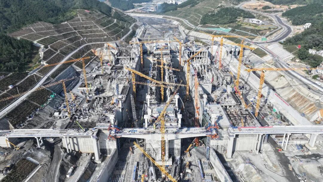 驱车行驶在平陆运河建设工地,但见主线桥梁施工如火如荼,船闸主体混凝土浇筑有条不紊,设备安装处塔吊林立。