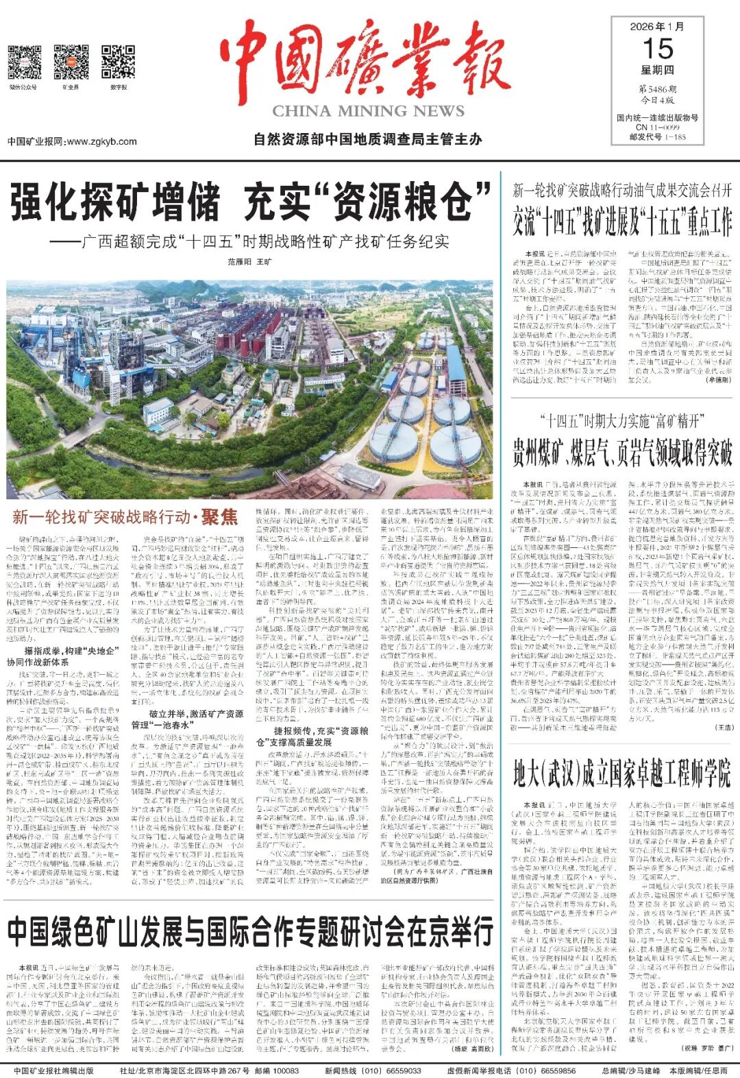站在“十五五”新起点上,广西自然资源系统将以开展矿业权整合和“小散乱”企业综合治理专项行动为契机,继续向地球深部进军,实施好“十五五”期间新一轮找矿突破战略行动,持续推动广西有色金属特别是关键金属高质量发展,为端牢能源资源“饭碗”,筑牢高质量发展根基贡献更多地质力量。