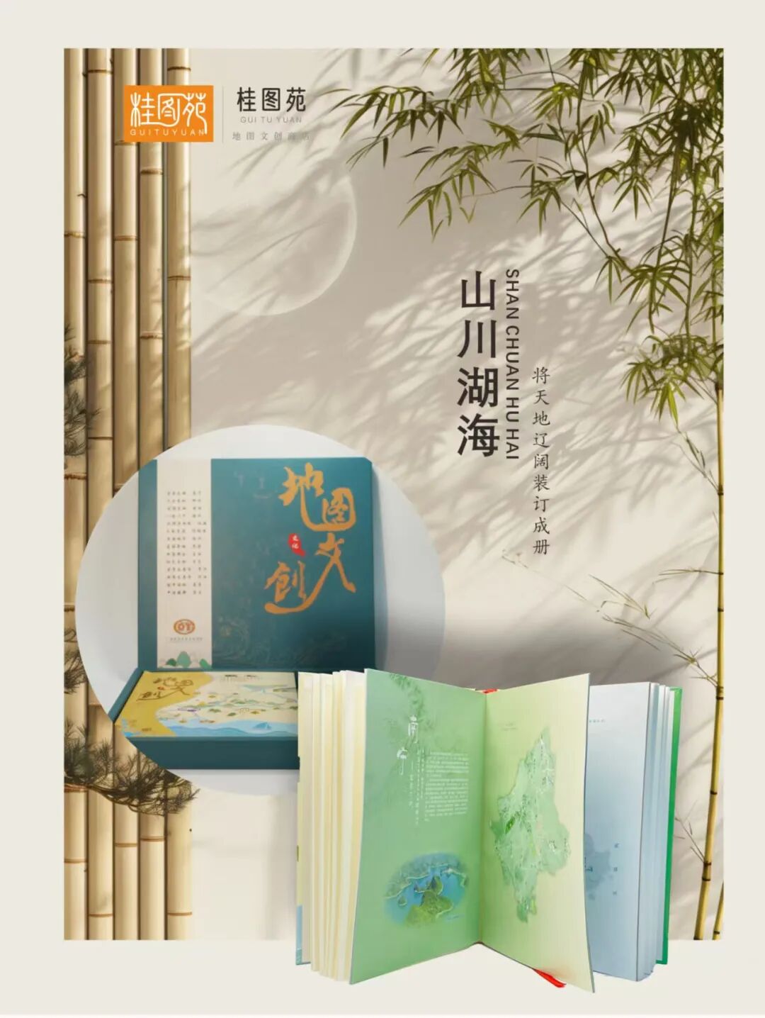《山川湖海•八桂山海图地图文创笔记本》以“绿水青山就是金山银山”理念为引领,实现历史性、实用性与艺术性的有机统一。作品外壳点缀崇左花山岩画元素,赋予笔记本深厚的历史底蕴;内页以广西14个地级市为脉络,运用色彩勾勒出各市山河肌理,艺术化展现了广西丰富的自然资源与独特的人文魅力。