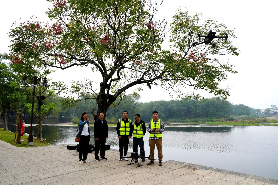 广西自然资源厅调查监测处调研组在兴安县灵渠了解“灵渠•湘江战役文化遗产长廊特色自然和人文资源调查”试点项目外业进展与成果应用情况。黄葛炎 摄