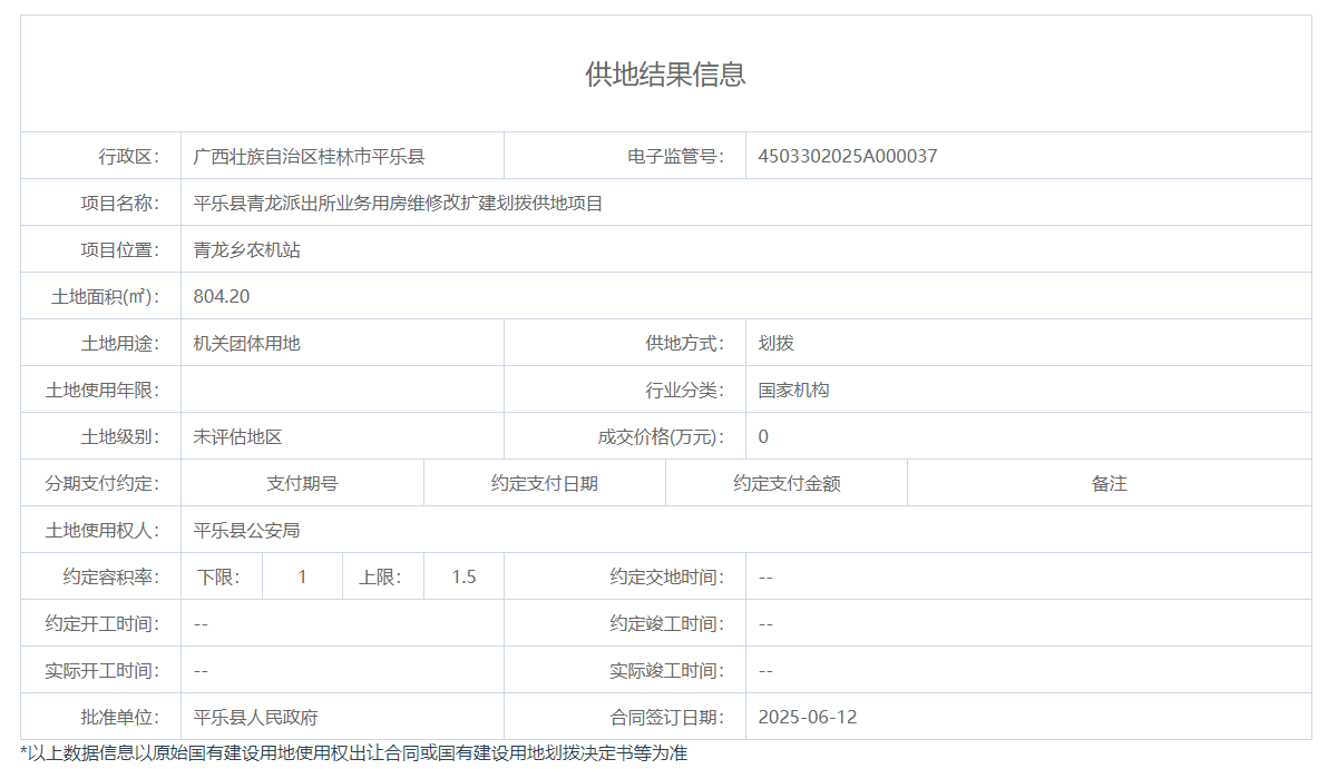 平乐县自然资源局2025年国有土地划拨用地供地结果(平乐县公安局)